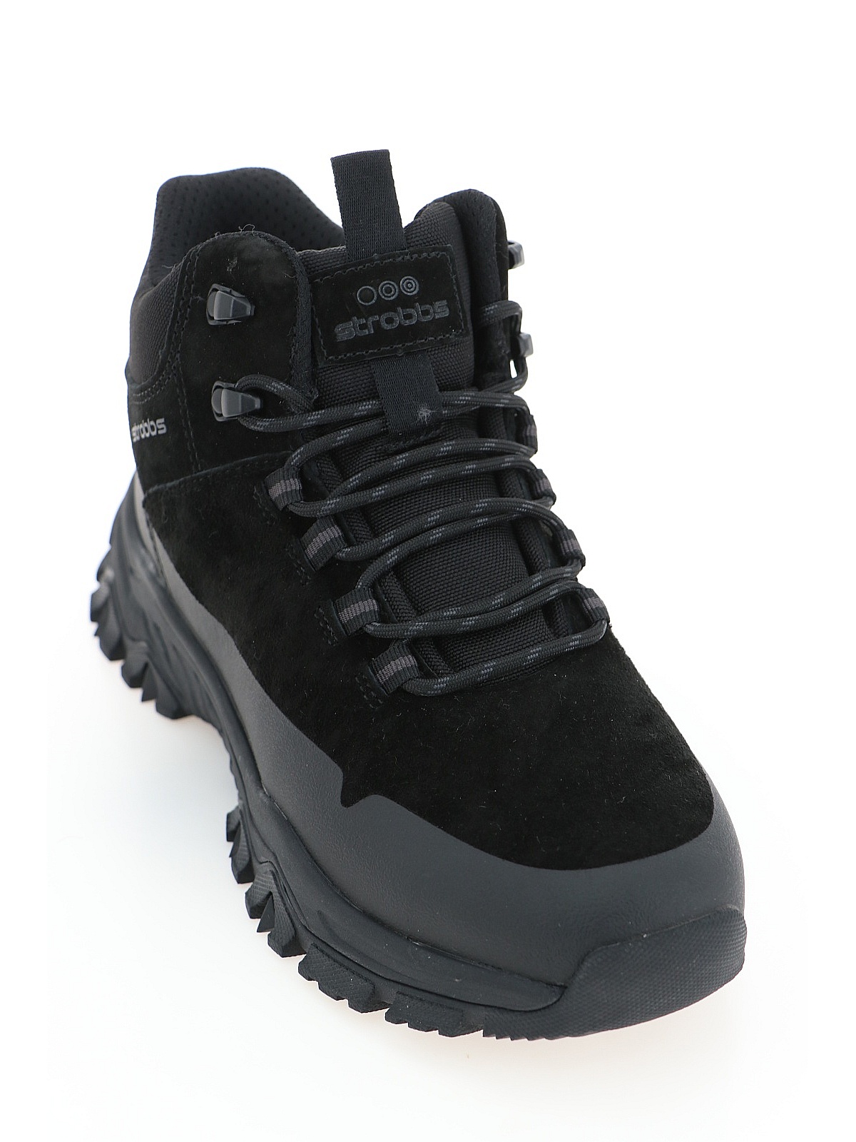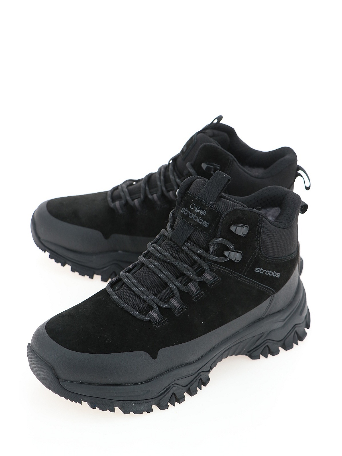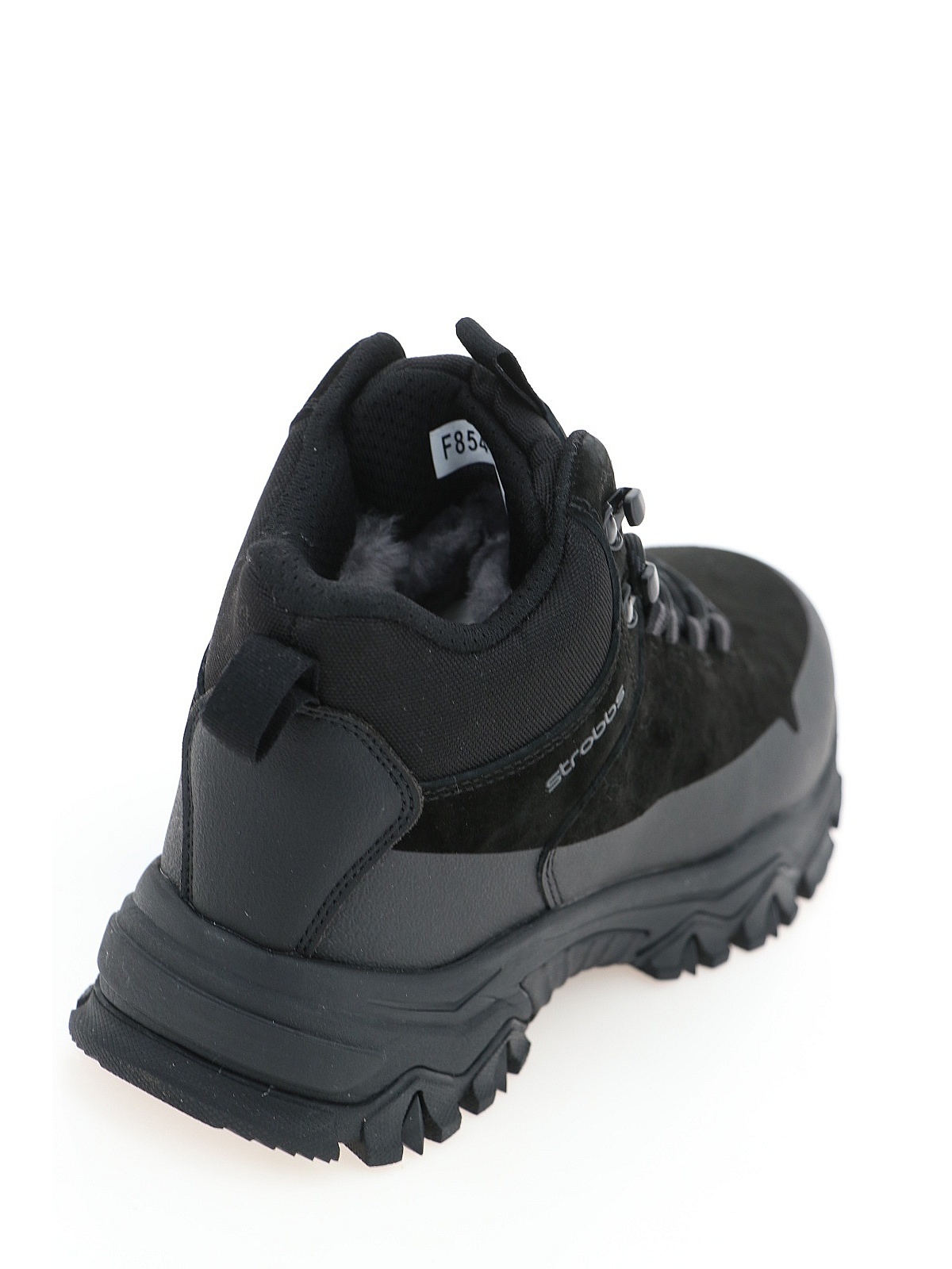 Женские зимние кроссовки STROBBS черного цвета для спорта и прогулок на свежем воздухе. Натуральный велюр и микрофибра верха сочетают стильный вид и износостойкость. Подклад из атурального меха сохраняет тепло даже в мороз, а текстильная манжета голенища надежно защищает от снега. Тракторная подошва из ЭВА и резины с отличной амортизацией обеспечивает уверенное сцепление на скользких поверхностях. Универсальные треккинговые кроссовки для активного зимнего отдыха. оптом в Красноярске